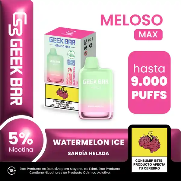 ¿Cómo pedir Geek Bar Vape Meloso Max Watermelon Ice 9000 Puffs 5% Nicotina en Rappi?