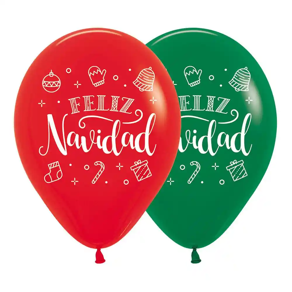 Globo de Navidad Fashion Surtido x12 globos con un estampado de Navidad, globos de dos colores Rojos y Verde, perfecto para las fiestas de navidad, decoracion de navidad, su diseño clásico y duradero garantiza que la diversión y el ambiente navideño duren durante toda la celebración.