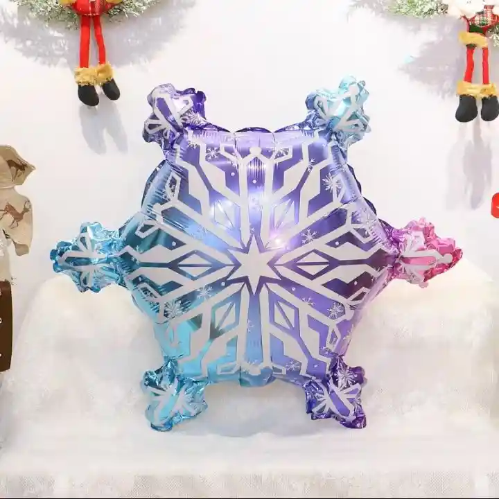 Globo metalizado en forma de copo de nieve sin inflar, en tamaño de 40 cm de alto. (Incluye pitillo para inflar el globo metalizado)