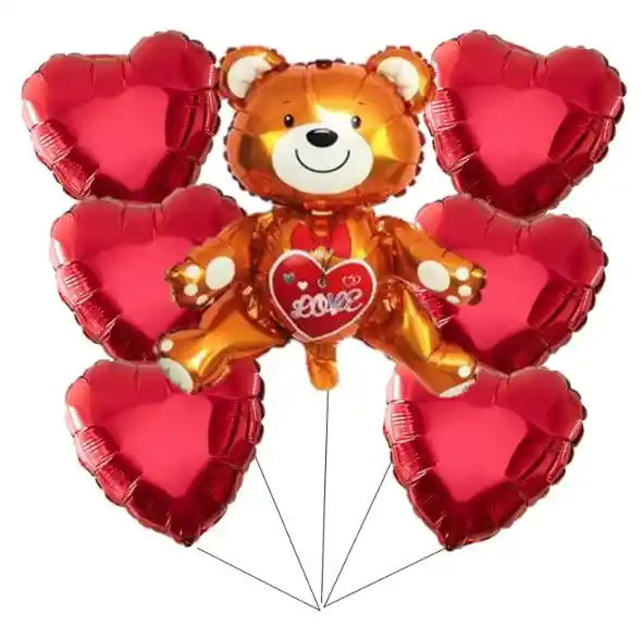 Globos amor San valentin Oso Decoración amor 6 globos corazon rojo 45 cm 1 oso 80 cm armable love Disponible para envio inmediato GLOBOS SE ENVIAN SIN INFLAR