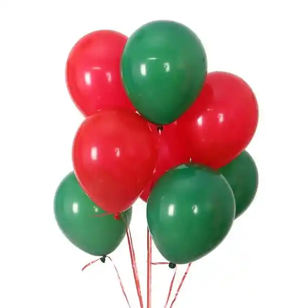 Globos biodegradable Sempertex rojos y verdes combinados inflados con helio. (Helio certificado NO INFLAMABLE). incluye: ·4 Globos fashion rojo inflados con helio ·4 Globos fashion verde inflados con helio Tratamiento de larga duración para globos. Tiempo aproximado flotación de globos 1 a 2 días. *TIEMPOS ACTUALES DE FLOTACIÓN VARIA DEPENDIENDO DE LA TEMPERATURA Y LAS CONDICIONES ATMOSFERICAS