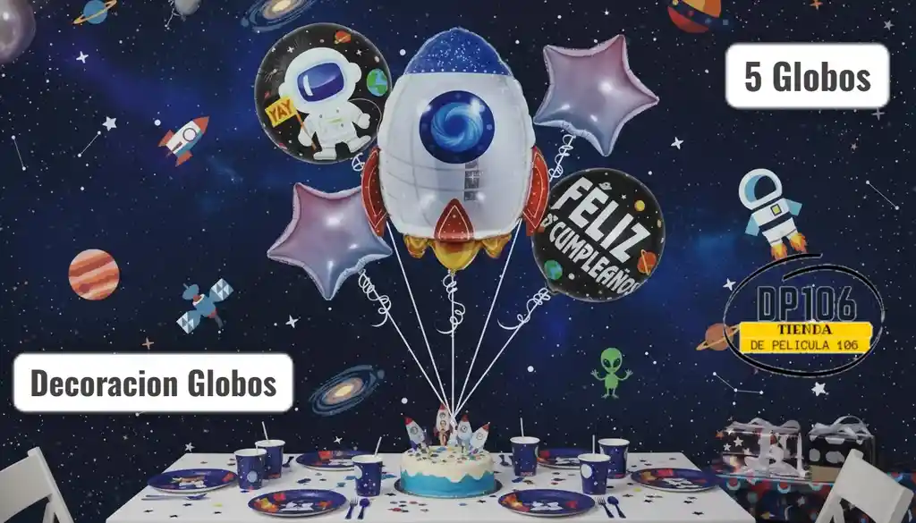 5 globos metalizados decoracion de astronautas / espacio