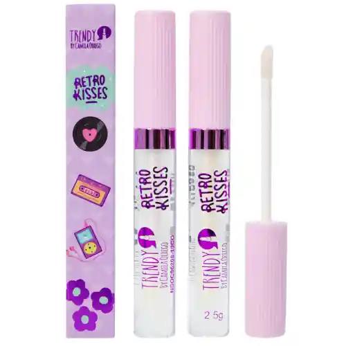 El BRILLO RETRO KISSES Trendy es un brillo de labios conocido por ofrecer un aspecto jugoso y suave sin ser pegajoso. -Acabado y Tonos: Proporciona un brillo intenso y está disponible en varias tonalidades, incluyendo opciones con destellos tornasol, destellos rosas y opciones transparentes. -Textura y Sensación: Tiene una textura suave y ligera que no se siente pesada en los labios, facilitando una aplicación cómoda. -Beneficios: Ayuda a mantener los labios hidratados gracias a ingredientes como glicerina y aceites emolientes, y tiene un agradable aroma dulce/frutal. -Uso Versátil: Se puede aplicar solo para un look natural o sobre labiales mates para añadir brillo y un efecto diferente. También puede usarse como iluminador en otras áreas del rostro.