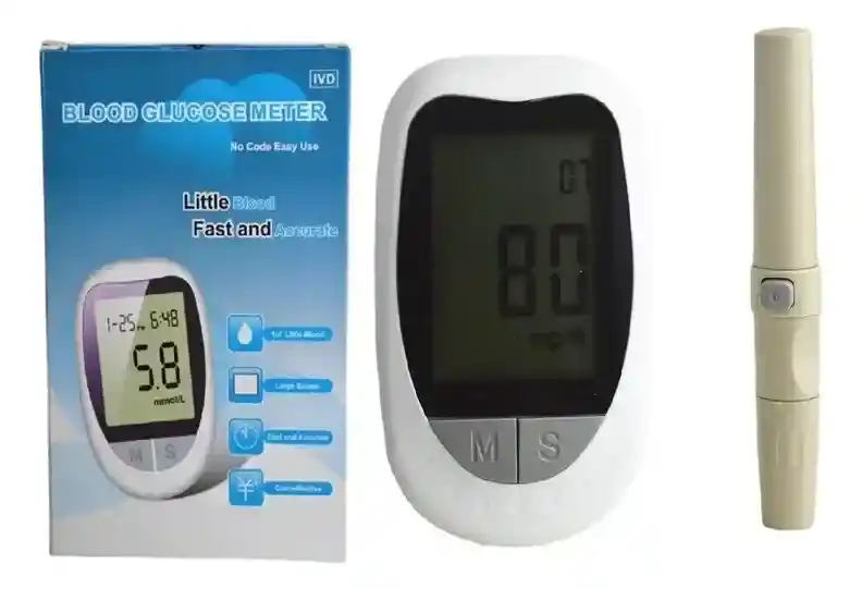 El glucómetro digital con tiras reactivas es una herramienta esencial en el monitoreo de los niveles de glucosa en la sangre para las personas con diabetes. Este dispositivo compacto y portátil permite a los usuarios medir con precisión sus niveles de azúcar en sangre de manera conveniente y rápida. El glucómetro en sí es un dispositivo electrónico con una pantalla digital que muestra los resultados de las mediciones. Utiliza una pequeña cantidad de sangre, generalmente obtenida mediante un pinchazo en el dedo, y se coloca en una tira reactiva específica. Estas tiras reactivas contienen sustancias químicas que reaccionan con la glucosa en la sangre y generan un valor numérico que se muestra en la pantalla del medidor. Calibración: Codificación automática Muestra: sangre entera capilar Material: ABS Tipo de artículo: medidor de glucosa en sangre Tamaño: 9x6x2cm Aplicación: Dedo Pantalla: pantalla digital LCD Método de prueba: prueba de tira de sangre Fuente de alimentación: pila de botón CR2032 (Incluida) Unidad: mmol/L y mg/dl Rango de prueba: 1,1-33,3 mmol/L(20-600mg/dL) Muestra de prueba: sangre completa capilar Mínimo añadir volumen: 1UL Tiempo de prueba: 7s Valor de memoria: 200 Rango HCT: 30-55% Temperatura de funcionamiento: 1-40 °C ¿Cómo se usa? 1. Inserte la tira de prueba en el medidor de glucosa en sangre 2. Pon la lanceta en la máquina de recolección de sangre 3. Utiliza una máquina de muestreo de sangre para perforar el dedo y dejar que la sangre fluya 4. Recoja una pequeña cantidad de sangre con un extremo de una tira de prueba de sangre 5. Esperando el resultado de la prueba 6. Tira de prueba emergente Contenido de la compra: *1 Glucómetro *50 Tiras Reactivas *50 Lancetas