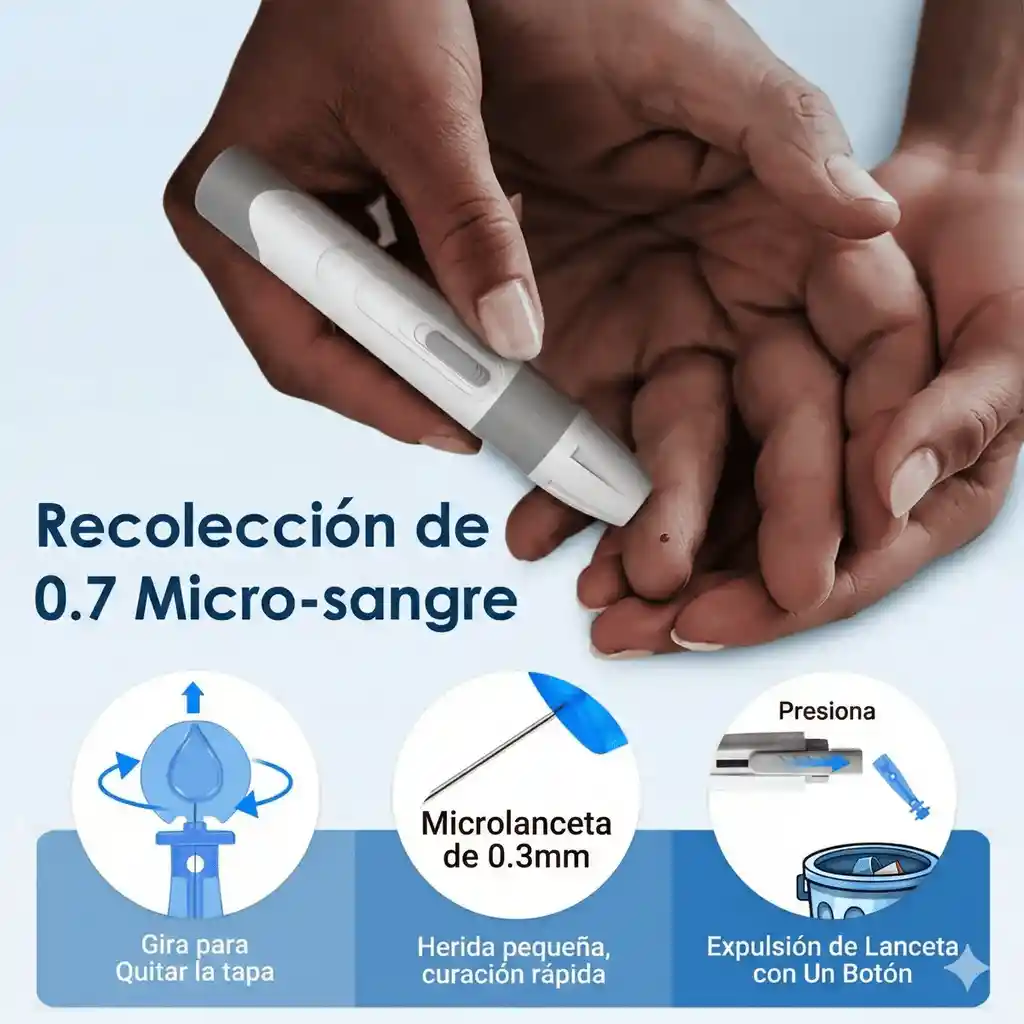 Tecnología de Encendido: Automático al insertar la tira (Auto-On) Tiempo de Medición: 5 Segundos Volumen de Muestra: 0.7 µL (Microfalange) Sistema de Codificación: No requiere código (No-Coding) Fuente de Energía: Baterías Alcalinas (Incluidas) Certificación: ISO 15197:2015 1 Medidor de Glucosa LinkSun G-425 1 Lancetero (Dispositivo de punción) 50 Tiras reactivas de prueba 50 Lancetas estériles 1 Estuche rígido de transporte Manual de instrucciones y guía rápida