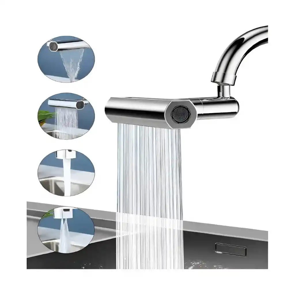 *Este extensor de grifo de cocina está equipado con un patrón único de agua en cascada, lo que hace que tu fregadero de cocina sea más elegante y funcional. *El modo cascada es ideal para enjuagar frutas y verduras, mientras que el modo de alimentación es perfecto para enjuagar platos, lo que los hace más fáciles de limpiar. *El modo raspador te ayuda a limpiar esquinas difíciles de alcanzar, y el modo de ducha proporciona un flujo de espuma suave para una experiencia agradable. Características *Fácil de instalar: *Este accesorio de grifo de cocina también viene con todas las piezas que necesitas. *Este grifo es fácil de instalar y no requiere herramientas. *Simplemente desenrosque el grifo viejo y reemplácelo por uno nuevo. Material de alta calidad: *El cuerpo del grifo de cocina en cascada está fabricado con latón macizo y ABS, por lo que puedes estar seguro de un uso duradero. *Su material fiable garantiza que es resistente a la corrosión, resistente a altas temperaturas y resistente al óxido, por lo que es la elección perfecta para un fregadero de cocina. 4 modos de función: *Este extensor de grifo para fregadero de cocina tiene 4 modos de salida de agua. *Puedes cambiar estos modos girando y usando botones para que coincidan con diferentes escenarios de uso. *El modo cascada es ideal para enjuagar frutas y verduras. *El modo de alimentación es perfecto para enjuagar platos, lo que los hace más fáciles de limpiar. *El modo raspador te ayuda a limpiar esquinas difíciles de alcanzar. *El modo de ducha proporciona un flujo de espuma suave para una experiencia agradable. Medidas *Ancho 14cm. *Largo 6.5cm.