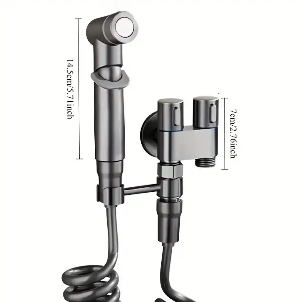 DUCHA VALVULA GRIFO DOBLE SALIDA BAÑO INODORO Hecho de acero inoxidable/material metálico, es duradero con una superficie pintada lisa para un fácil mantenimiento, y su apariencia gris se adapta a varios estilos de baño. Combina funciones de rociado de alta presión manual y grifo; la válvula de control bidireccional de doble manija puede cambiar de manera flexible los modos de flujo de agua para satisfacer diferentes necesidades como la higiene personal, el baño de mascotas y la limpieza de pañales