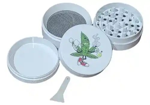 El grinder metálico de 3 pisos con diseño es una herramienta de molienda premium fabricada en aleación de aluminio anodizado de alta calidad, que combina funcionalidad superior con elementos estéticos decorativos grabados o impresos en su superficie externa. Esta pieza de tres compartimentos presenta la configuración clásica optimizada