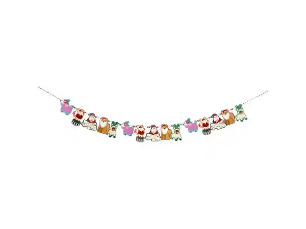 Guirnalda Decorativa Con 12 Figuras de Madera Laminada Impresa. Cuenta Con un Largo Total 25 Metros