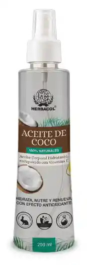 El Aceite de Coco Herbacol (250 ml) es un producto cosmético natural diseñado para la hidratación profunda tanto de la piel como del cabello. Se caracteriza por ser una fórmula de rápida absorción que no deja sensación grasosa y está enriquecida con Vitamina E.
