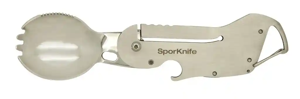 True Utility Sporknife Producto diseñado en el Reino Unido. Horquilla plegable y de bloqueo de acero inoxidable, cuchara, hoja ligeramente dentada y abrebotellas todo en uno. Se adhiere a su presilla para cinturón, a su llavero o a su bolsa con su práctico y práctico clip de liberación rápida. Llévate al trabajo, a las aventuras al aire libre y al viajar; este es un transporte diario imprescindible. Cerraduras para un uso cómodo Se pliega a un tamaño compacto. Ideal para acampar, picnics, oficina, viajes, etc. Todos los productos de True Utility vienen en un HardCase versátil y resistente a la intemperie. El HardCase es resistente, duradero, resistente a la intemperie y lo más importante, reutilizable. Perfecto para actividades al aire libre y protección de objetos valiosos contra el polvo y la humedad. Agrega valor a cada compra de True Utility. Hecho de estireno cristalino reciclable. Funciones: 1. Cuchara 2. Tenedor 3. Cuchillo 4. Destapador 5. Llavero Características: Altura: 16.5 cm abierto cerrado 10 cm Ancho: 4.5 cm Longitud: 10.2 cm Peso: 65 g Longitud: 10.2 cm Ancho: 4.5 cm Altura: cerrado L102 x W45mm, abierto L162 x W40mm Dimensiones externas de la caja: 70/75 x 120 mm ¡True Utility, in your pocket!