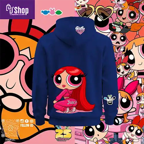 Hoodie para dama estampado en DTF Textil con tematica Powerpuff Girls
