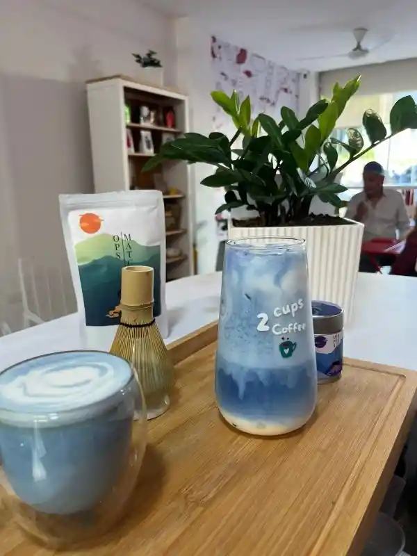 Blue Matcha, bebida fria en leche entera , deslactosada o vegetal 400 ml se adiciona Blue Matcha 2 gramos. Esta bebida es rica en antioxidantes , ayuda a relajar la mente y prepara tu cuerpo para un sueño reparador.