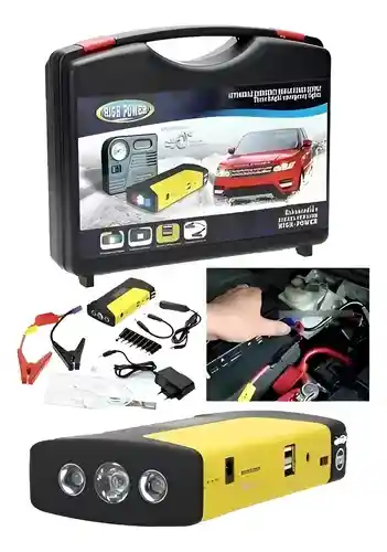 🚗⚡ ¡No vuelvas a quedarte varado! Este iniciador de carro portátil 12V es la herramienta ideal para emergencias en carretera. Además de arrancar tu vehículo, funciona como power bank, compresor de llantas y linterna de emergencia todo en un solo equipo compacto. 🔋 Batería de alta potencia – 9600mAh Admite carga rápida y baja auto descarga para mayor duración. ✅ Compatible con vehículos de 12V o más ✅ Ideal para autos, motos y camionetas ✅ Arranque rápido y seguro 💡 3 Modos de iluminación: • Linterna • Luz intermitente • Luz SOS para emergencias 🛞 Incluye compresor de aire para inflar llantas en cualquier momento. 📱 Además funciona como Power Bank para cargar: • Celulares • PSP • MP3 / MP4 • Laptops • Refrigeradores de auto • Otros dispositivos compatibles 📌 Especificaciones Técnicas: • Voltaje compatible: 12V o más • Potencia nominal: 300W • Capacidad: 9600 mAh • Material: Plástico + Acero inoxidable • Tamaño: 2.8 x 13.6 pulgadas aprox. • Peso: 28.22 oz aprox. 📦 Incluye: ✔ Iniciador con linterna ✔ Compresor ✔ Cable de carga ✔ Cable 12V cigarrera ✔ Cables para celular ✔ Puntas para cargador ✔ Cables para iniciar batería ✔ Estuche ✔ Manual de uso 🚨 Producto ideal para tener en el carro, viajes largos o emergencias. 📲 Escríbenos para precio y disponibilidad. 📦 Entregas rápidas.