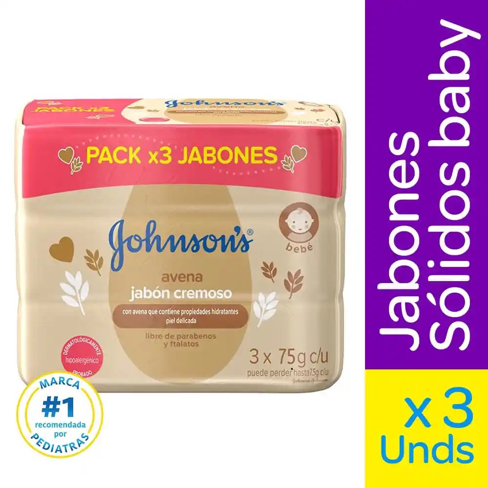 El jabón cremoso JOHNSON’S® Baby Avena está hecho con avena natural, que contiene propiedades hidratantes para limpiar suavemente la delicada piel del bebé. Su fórmula suave es dermatológicamente probada y es libre de parabenos y ftalatos. Limpieza segura y efectiva, eliminando el 99.9% de los gérmenes***