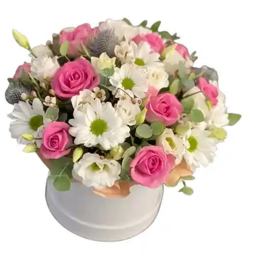 Un delicado arreglo en base blanca con rosas rosadas y flores en tonos suaves, ideal para regalar frescura y elegancia en cualquier ocasión. Flores frescas de calidad premium, seleccionadas y armadas profesionalmente para un diseño compacto, armonioso y moderno. Algunas flores pueden variar según la disponibilidad de temporada, manteniendo siempre la estética y el valor del arreglo. Incluye tarjeta personalizada sin costo adicional.