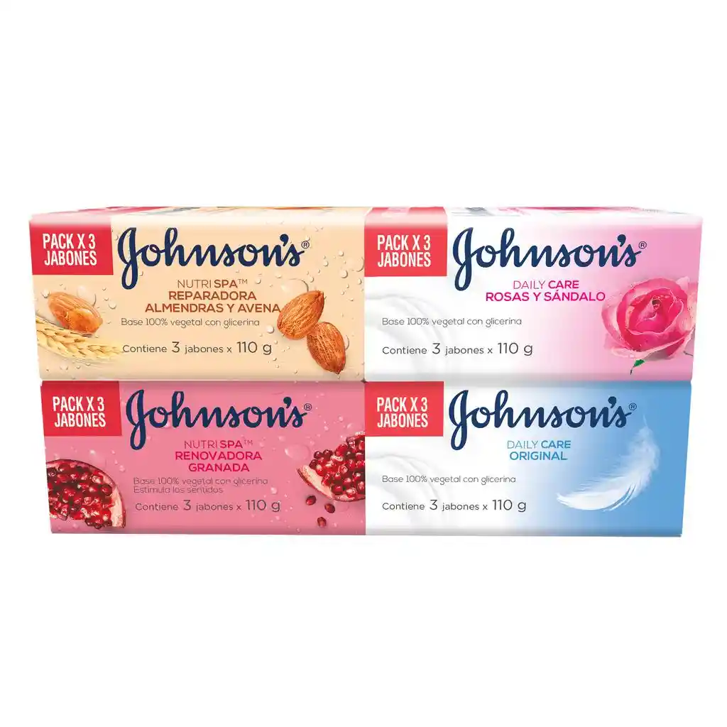 Johnson's Jabón Surtido 12 Unidades / 110 g es un producto perfecto para aquellos que buscan una limpieza suave y efectiva para su piel. Con una variedad de aromas y fórmulas, estos jabones cuidan gentilmente de tu piel gracias a sus agentes hidratantes e ingredientes naturales. Con tres variedades de jabones para elegir, cada uno diseñado para satisfacer diferentes necesidades de la piel, es fácil encontrar el jabón perfecto para ti. Ya sea que prefieras el aroma de rosas y sándalo, la suavidad de la avena y el aceite de almendras, la nutrición renovadora o la fórmula original, todos están dermatológicamente comprobados para asegurarse de que sean suaves y seguros para tu piel. El paquete incluye 12 unidades de 110 g cada una, lo que significa que tendrás suficiente jabón para mantener tu piel limpia y suave durante semanas. Incluye: 3 Rosas y sándalo, 3 Avena y aceite de almendras, 3 Nutrición renovadora y 3 Fórmula original. ¡Y no te preocupes por quedarte sin tu favorito, ya que cada pack incluye una variedad de aromas y fórmulas!