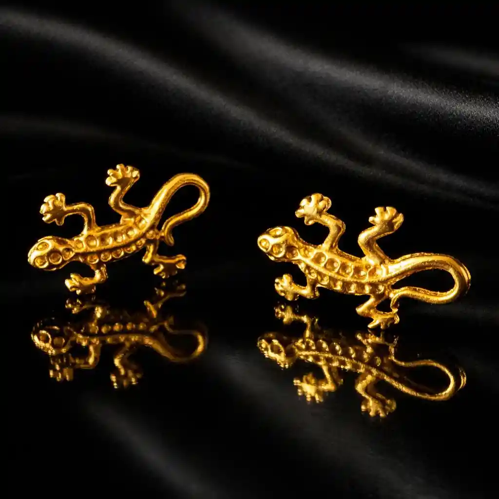 Aretes topo Precolombinos bañados en oro de 24k replica de lagartija