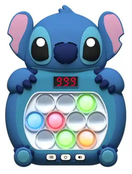 Diviértete y mejora tu concentración con el juego Speed Push de Stitch. Juguete interactivo tipo pop-it que combina diversión, velocidad y habilidad mental en un adorable diseño del personaje Stitch. Características principales: Juego de velocidad y concentración con 999 niveles de dificultad Diseño de Stitch, el popular personaje azul de Disney Pantalla digital LED que muestra puntuación y nivel Botones tipo pop-it táctiles para presionar rápidamente 4 modos de juego diferentes para mayor diversión Efectos de sonido y luces interactivas Función anti estrés y relajante Ideal para mejorar reflejos y coordinación mano-ojo Especificaciones técnicas: Modelo: 999-2 Personaje: Stitch Edad recomendada: 3+ años Material: Plástico ABS resistente Alimentación: Baterías (no incluidas, generalmente AAA) Dimensiones compactas para llevar a cualquier lugar Beneficios: Entrena memoria y velocidad de reacción Reduce ansiedad y estrés Entretenimiento sin pantallas Desarrollo de habilidades motoras Diversión para toda la familia Contenido del paquete: 1 Juego Speed Push Stitch 999-2 Instrucciones de uso Empaque original con diseño atractivo Ideal para: Regalo para niños y adolescentes Juguete educativo y divertido Alivio de estrés para adultos Entretenimiento de viaje