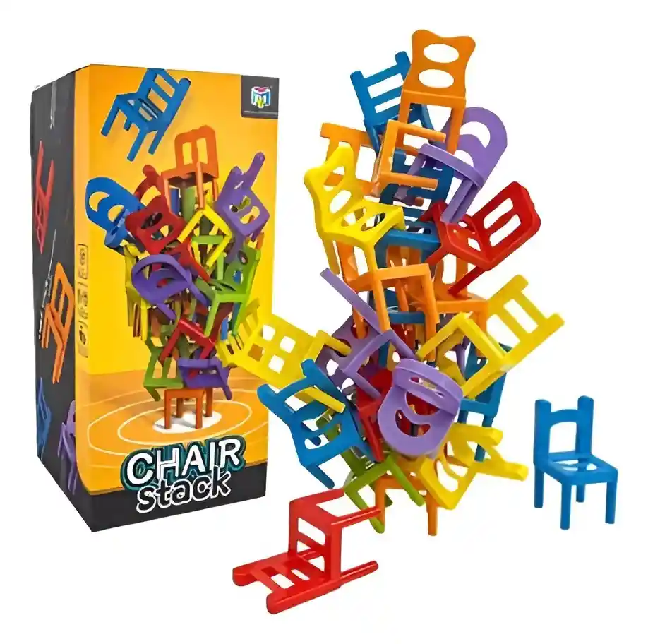 -Hecho de plástico de alta calidad, seguro y no tóxico, inodoro y saludable -Resistente y duradero -Juego de rompecabezas -Desarrolla las habilidades de reconocimiento de colores y formas de los niños. -Entrena la coordinación mano-ojo y brindan mucha diversión para toda la familia. -Numero de fichas: 42 piezas -La mini silla es liviana y portátil, fácil de transportar y almacenar. -Juego portatil y facil de llevar -Coge una silla, colócala en la torre de forma equilibrada, busca el lugar donde no se caiga y apila las sillas para aumentar la tensión y hacerlo aún más emocionante. MODO DE JUEGO - Divide las sillas por igual entre los jugadores. - El jugador más joven comienza primero e inicia la ronda. - En todas las rondas los jugadores colocan sillas en la pila de una en una, intentando que ésta no caiga. Solo la primera silla puede tocar la mesa: las otras deben estar encima de la pila, sobre otras sillas. - En el caso que caigan sillas durante una jugada, el jugador que provocó las caída debe recoger las sillas caídas y colocar una silla sobre lo que quede en la torre. Si no ha sobrado ninguna, inicia una nueva torre. - El juego termina en la ronda en la que uno o más jugadores se han librado de todas las sillas (todos tienen que jugar en esa ronda). Si solo es uno, éste gana la partida. Si son dos o más jugadores, ¡ambos comparten la victoria! Existen más variantes del juego, convirtiéndolo en un juego realmente entretenido.