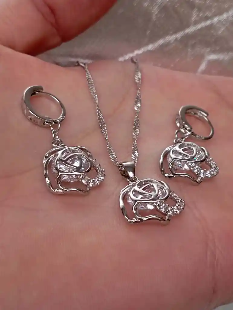 JUEGO EN PLATA 925 2 Aretes 1 Cadena 1 Dije Material: Plata Piedra: Circon