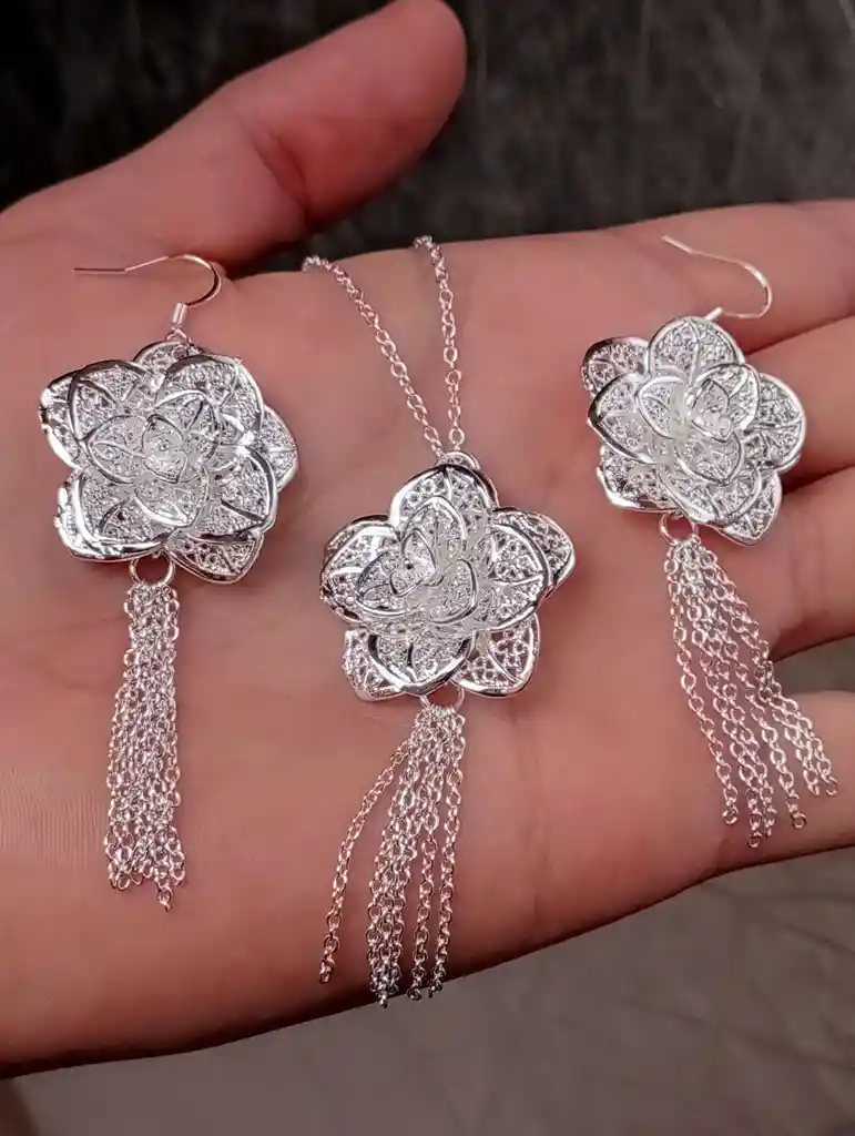 JUEGO EN PLATA 925 2 Aretes 1 Cadena 1 Dije Material: Plata Piedra: Circon