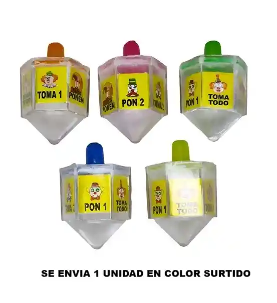 Juego de estrategia con 6 caras ideal para desarrollar habilidades tácticas en jugadores a partir de 14 años Este tradicional juego que nos enloquecía, toma todo, todos ponen. Juego de pirinola para salir de la monotonía junto a tus amigos, es momento de un poco de diversión, elaborado en material plástico resistente. Puedes jugar junto a tus amigos o pareja. -Pirinola para jugar con amigos -Distintos retos -Incluye 6 distintas caras -Material plástico -Rompe la monotonía -Diversión con amigos o pareja Medidas: Alto: 4 cm Ancho: 2.5 cm