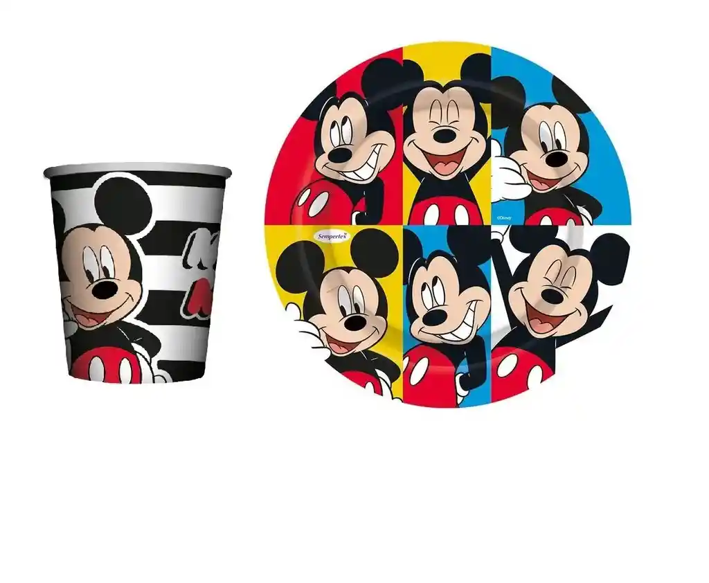 QUEDA SOLO 1 UNIDAD DE ESTE PRODUCTO Juego Vaso Plato Mickey Facetime Sempertex Contiene: Vasos Sempertex de Carton 9oz x 8 unidades Plato Sempertex de Carton 7" 18cm x 8 unidades