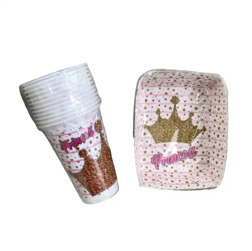 Juego de Vaso y Pudinera de motivo Princess Incluye: 12 Vasos - 12 Pudineras