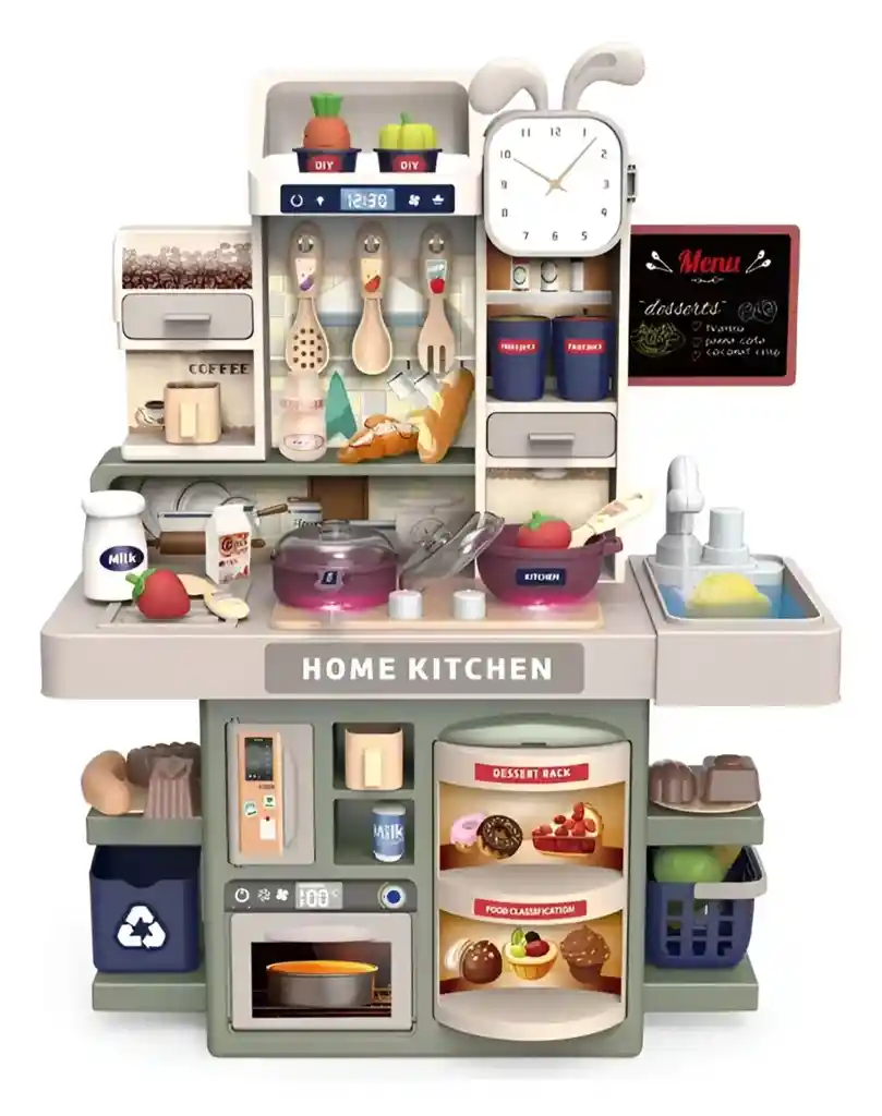 ¡Diversión garantizada para los pequeños chefs de la casa! 👩🍳👨🍳 La Cocina Set Home Kitchen es un juguete interactivo ideal para estimular la imaginación, el juego de roles y la creatividad de los niños. ✨ Características principales: 🔊 Efectos de luz y sonido realistas que hacen el juego más divertido 🍲 Incluye múltiples accesorios: ollas, utensilios, alimentos, tazas y más ⏰ Reloj decorativo y estantes para almacenamiento ☕ Zona de café, horno, fregadero y área de cocción ♻️ Compartimentos y diseño moderno tipo cocina real 🧸 Tamaño pequeño, ideal para espacios reducidos y fácil de armar 🎨 Diseño colorido y seguro, fabricado con materiales resistentes y bordes suaves. 👶 Edad recomendada: a partir de 3 años 🎁 Perfecto como regalo para cumpleaños, Navidad o cualquier ocasión especial. ¡Que los niños se diviertan aprendiendo mientras cocinan sus mejores recetas imaginarias! 🍰🍝