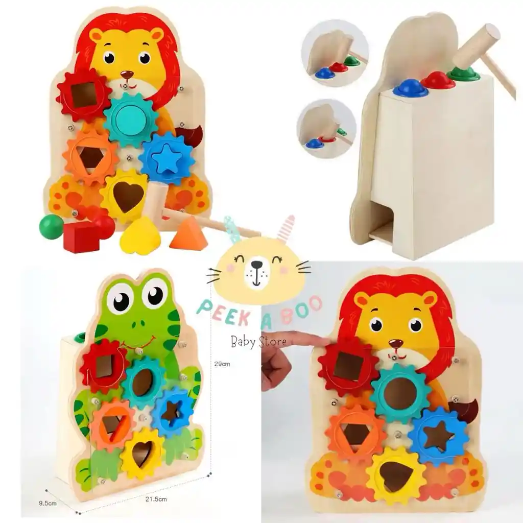 León Didáctico Multifuncional Este juguete educativo ha sido diseñado para estimular el desarrollo motriz y cognitivo de los niños a través de diversas actividades interactivas. Su diseño en forma de león colorido y atractivo hace que el aprendizaje sea una experiencia divertida y envolvente. Características: Clasificación de formas: Incluye piezas para encajar, ayudando a los niños a reconocer diferentes figuras y colores. Desarrollo de motricidad fina: Permite girar tuercas, mejorando la coordinación mano-ojo y la destreza manual. Juego de martillo: Diseñado para fortalecer la fuerza y precisión en las manos de los niños mientras golpean las piezas. Material resistente y seguro: Fabricado con bordes redondeados y materiales no tóxicos para garantizar la seguridad de los pequeños. Ideal para niños en etapa de exploración: Estimula la creatividad, la concentración y la resolución de problemas. Este león didáctico es perfecto para niños en edad preescolar, combinando aprendizaje y diversión en un solo juguete.
