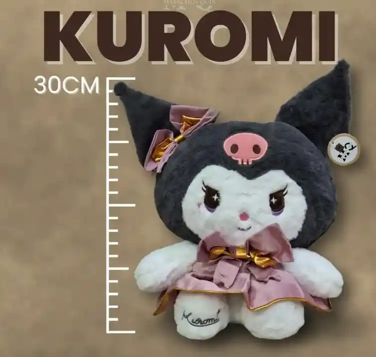 Juguete Peluche Gata Kuromi Con Vestido Rosado De 30 Cm
