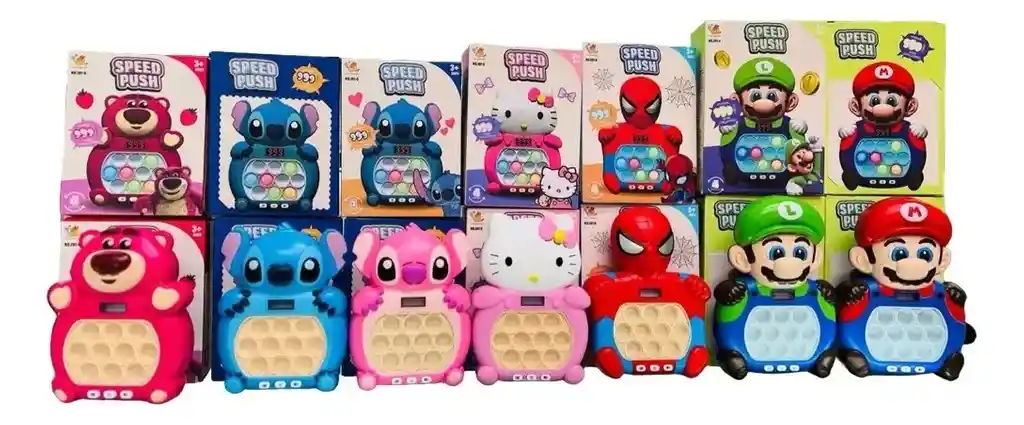 Juguete Memoria Pop It ¡Desafía la memoria y diviértete con el Juguete Pop It de personajes animados! Con luces que guían el juego, este Pop It no solo entretiene, sino que también estimula la memoria y la concentración. ¡Diversión educativa en cada toque! DESCRIPCION JAL El Juguete Memoria Pop It de personajes animados con luces es la combinación perfecta de diversión y aprendizaje para los más pequeños. Diseñado con colores vibrantes y personajes que capturan la imaginación, este juguete estimula la memoria y la concentración a través de un juego interactivo. Al tocar las burbujas iluminadas, los niños deben seguir la secuencia que se presenta, desafiando su agilidad mental y mejorando sus habilidades cognitivas mientras se divierten. Además, el uso de luces LED en el juguete añade un elemento visual atractivo que mantiene a los niños entretenidos por horas. Fabricado con materiales seguros y duraderos, este Pop It es ideal para jugar en casa, en fiestas o en cualquier reunión familiar. Fomenta la competencia amistosa y la socialización entre amigos, haciendo de este juguete una excelente opción para estimular tanto el desarrollo mental como el juego en grupo. ¡Es el regalo ideal para aprender mientras juegan! CARACTERISTICAS - Permite a los niños seguir secuencias de luces, fomentando el desarrollo de la memoria. - Presenta personajes animados populares que capturan la atención de los niños. - Ayuda a mejorar la concentración, la coordinación y la agilidad mental. - Fabricado con materiales no tóxicos y duraderos, ideal para el uso infantil. - Incorpora luces coloridas que se iluminan al jugar, haciendo la experiencia más atractiva. Medidas: Alto: 18cm Ancho: 13cm Largo: 5cm Peso: 150g QUE INCLUYE LA COMPRA X1 Pop It
