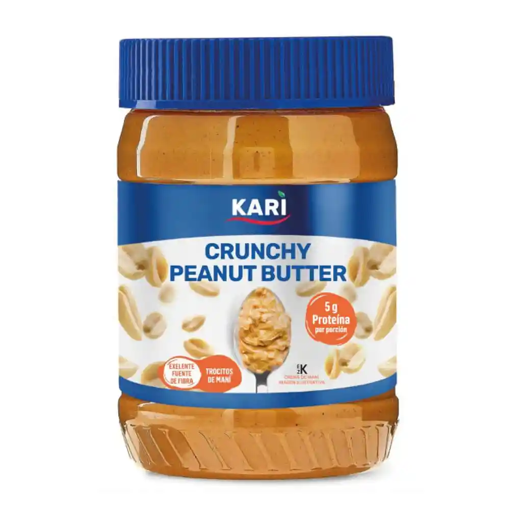 Kari Crema de Maní Crujiente ofrece una textura rica con trocitos de maní que aportan sabor y una sensación más saciante. Sus 5 g de proteína por porción contribuyen al mantenimiento de la energía diaria y apoyan una alimentación equilibrada. Ideal para untar, mezclar en batidos o acompañar frutas, aporta grasas saludables que favorecen saciedad y buen rendimiento durante el día. Su consistencia crujiente la convierte en una opción deliciosa y práctica para quienes desean añadir nutrientes y sabor a sus comidas de forma sencilla.