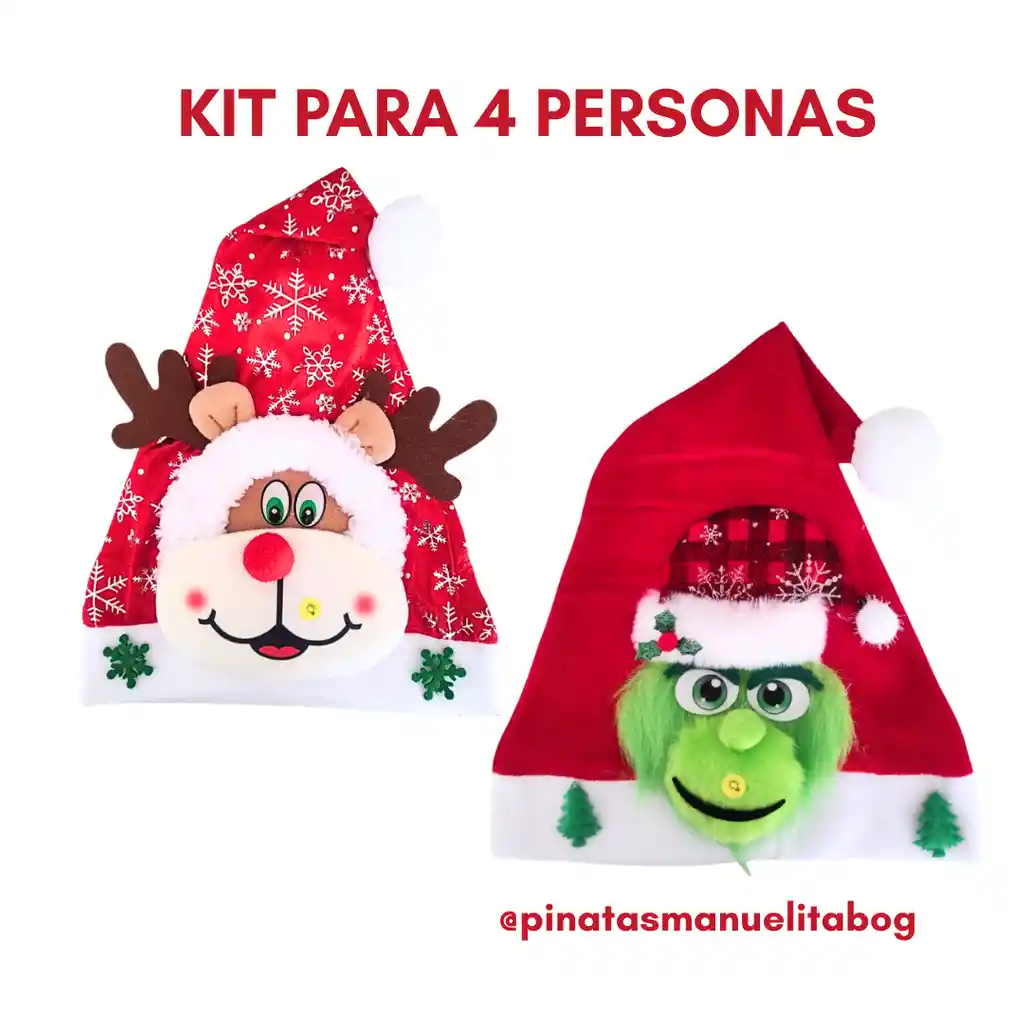Set de accesorios para 4 personas para celebrar esta navidad, este kit incluye: ·2 Gorritos navideños grinch ·2 Gorritos navideños reno Ideal para que toda la familia o amigos tengan los accesorios para celebrar esta navidad