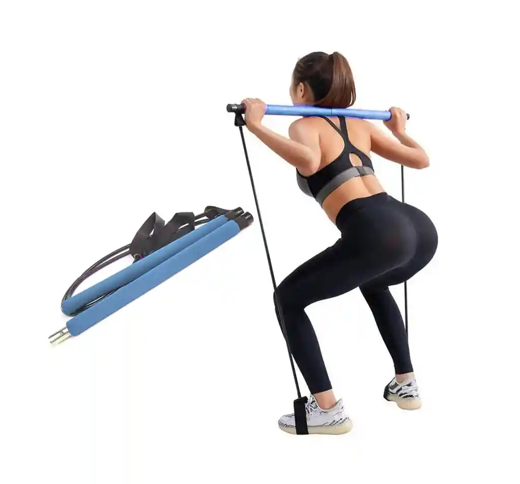 Kit Barra De Pilates Portátil Con Bandas Elásticas El Kit Portátil de Pilates permite realizar los movimientos sin necesidad de equipo pesado en la comodidad de su propia casa. Lleve a cabo una variedad de movimientos mediante el uso de dos monitores de 46 cm, cables de alimentación y bandas elásticas en los pies. La mayoría de sus productos son fáciles de desmontar y sencillos de almacenar. Esta Máquina para Hacer Pilates es ligera y portátil, la puedes utilizar en tu casa o en un estudio de entrenamiento persona. Puede ser utilizada para el entrenamiento de Pilates, así como para la formación superior de la fuerza del cuerpo. Cuenta con nuevos cables de alimentación, los cuales son una alternativa más segura y resistente a la hora de realizar los ejercicios a realizar. Este producto incluye una guía ilustrada de entrenamiento. El ritmo de la vida complica que se pueda ir al gimnasio, sin mencionar los altos costos de las mensualidades de los gimnasios, por ello con el Kit Portátil le presentamos una poderosa herramienta, con la cual, podrá ejercitarse desde la comodidad de su hogar con los mejores resultados, porque une la fuerza y precisión que brindan las ligas elásticas con el peso corporal para crear la mejor tensión que le ayudará a mejorar y escupir su figura, sin pagar mucho más. Medida: 56 cm cada lado de la barra desarmada, Barra Armada 92cm Largo De cada cuerda 86cm Barra Cubierta de fomi para mayor comodidad al usarla. Ayuda Moldea la figura. Ayuda Tonifica. Para hombres y mujeres. Lo puede utilizar para rutinas de Pilates. Ligero y portátil fácil de utilizar. Para Ejercitar el cuerpo. Puedes Fortalecer Piernas, glúteos y brazos. Sirve para tonificar el abdomen. Fácil de Transportar. Muy Resistente.