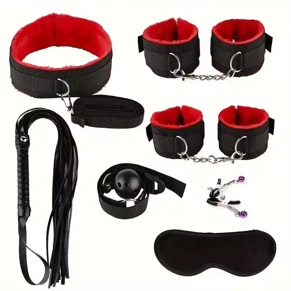 Kit bondage 7 piezas, cuero sintético.