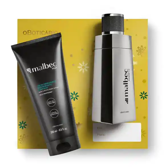 O Boticário CO | Kit de amor y amistad masculino Perfume Malbec + desodorante crema corporal Regalos de amor y amistad ¡Un éxito de O Boticário! -El perfume para hombre Malbec Edt Magnetic tiene notas de tierra rica en minerales, la presencia frutal de uvas blancas alsacianas y las maderas de Malbec. Esta colonia para hombre Magnetic, es una fragancia intrigante y extremadamente seductora, que despierta una fuerte e inexplicable atracción, es la expresión olfativa del magnetismo: atrayente y adictivo. -El desodorante en spray para hombre Malbec Club brinda protección y perfuma la piel con hasta 48 horas contra los malos olores del sudor, con una fragancia masculina amaderada es intensa y misteriosa. La piel masculina también necesita cuidados diarios y sufre olores de transpiración provocados por bacterias, de ahí la importancia de utilizar desodorantes de calidad. El desodorante antitranspirante hombre, además de proteger, hidrata la piel y tiene una acción desodorante. Con un secado súper rápido, minimiza las manchas en la ropa y garantiza la protección contra las bacterias. Ningún producto de OBoticário es testeado en animales, este producto tiene sello Cruelty Free.