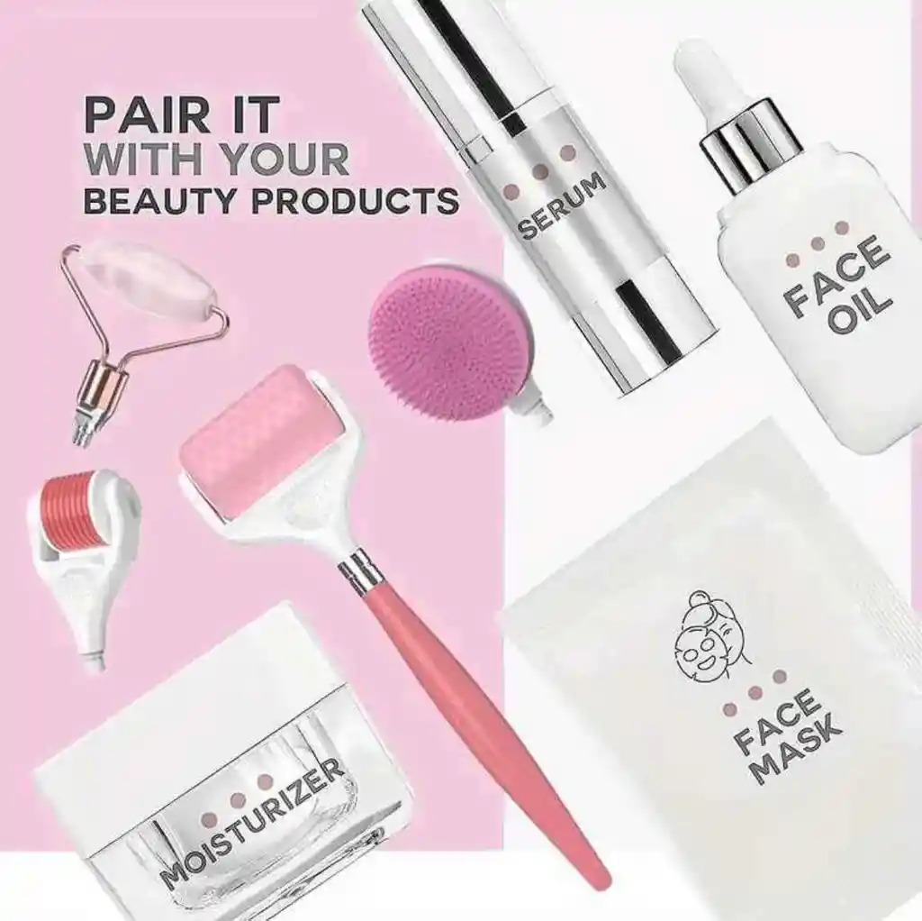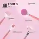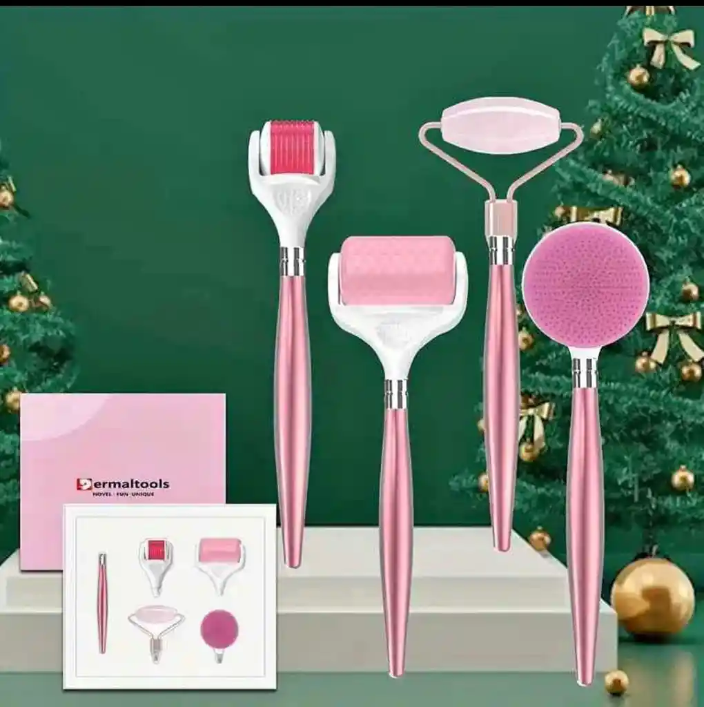 Conjunto de belleza que incluye rodillo dérmico rosa de cuarzo, rodillo de jade, rodillo de hielo, cepillo de limpieza para la piel. Todos en 1,