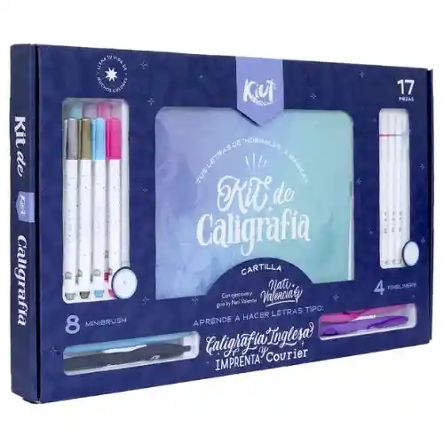 es un completo set diseñado para acompañarte en tus primeros pasos dentro del mundo de la caligrafía y el lettering. Creado en colaboración con Nati Valencia, reconocida por su estilo creativo y su pasión por la escritura artística, este kit reúne todo lo necesario para aprender, practicar y desarrollar nuevas técnicas de manera sencilla y divertida. ¿Qué es? Es un kit creativo especialmente pensado para quienes desean iniciarse en la caligrafía artística. Incluye materiales de alta calidad y una cartilla guía con ejercicios paso a paso, que te permitirán explorar distintos estilos como imprenta, courier, caligrafía inglesa y mucho más. Ficha técnica Componentes del kit: 1 cartilla con ejercicios guía para practicar diferentes técnicas de caligrafía y lettering. 8 marcadores Mini Brush. 4 bolígrafos. 4 fineliners. Usos ideales: Aprender y practicar caligrafía desde cero. Perfecto para principiantes, estudiantes y amantes del lettering que quieran mejorar su técnica. Ideal para proyectos creativos, apuntes bonitos, diarios, decoración y escritura artística. Propiedades del producto: Combinación perfecta entre práctica, color y diseño. Elaborado con materiales de alta calidad que garantizan trazos suaves y uniformes. Diseñado para fomentar la creatividad, el aprendizaje y la expresión personal. Desarrollo conjunto con Nati Valencia para ofrecer una guía didáctica, moderna y llena de inspiración.