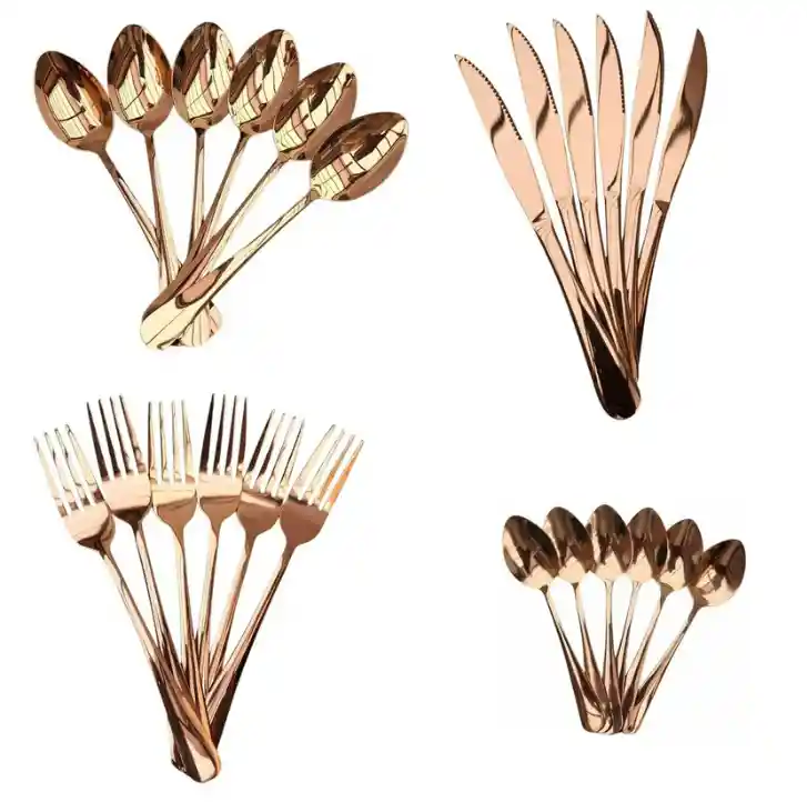 Renueva tu mesa con este set de cubiertos 24 piezas en acabado oro rosa. Perfecto para el uso diario o para reuniones en casa. Fabricado en acero inoxidable resistente, duradero y fácil de limpiar. El acabado en oro rosa le da un estilo moderno que combina con cualquier vajilla. Incluye 24 piezas para 6 puestos: 🍴 6 tenedores 🥄 6 cucharas 🥄 6 cucharitas 🔪 6 cuchillos ✔️ Resistentes y duraderos ✔️ No se oxidan fácilmente ✔️ Fáciles de lavar ✔️ Ideales para hogar o regalo Un set completo que mejora la presentación de tu mesa sin complicaciones.