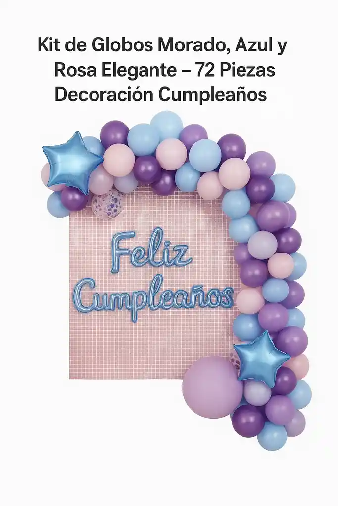 Decora con estilo y color tu celebración con este kit de globos en tonos metálicos y pasteles. Perfecto para cumpleaños, baby showers, fiestas temáticas y todo tipo de eventos especiales. ✨ Incluye 72 piezas: Globos metálicos morados y rosados. Globos azul pastel y beige claro. Globos transparentes con confeti. Estrellas foil metálicas. Accesorios para armar el arco fácilmente (cinta, pegatinas y herramientas). ✅ Fácil de instalar sin experiencia. ✅ Material resistente y de alta calidad. ✅ Diseño llamativo y moderno que dará un toque único a tu fiesta. Con este kit transformarás cualquier espacio en un ambiente festivo, elegante y lleno de color.