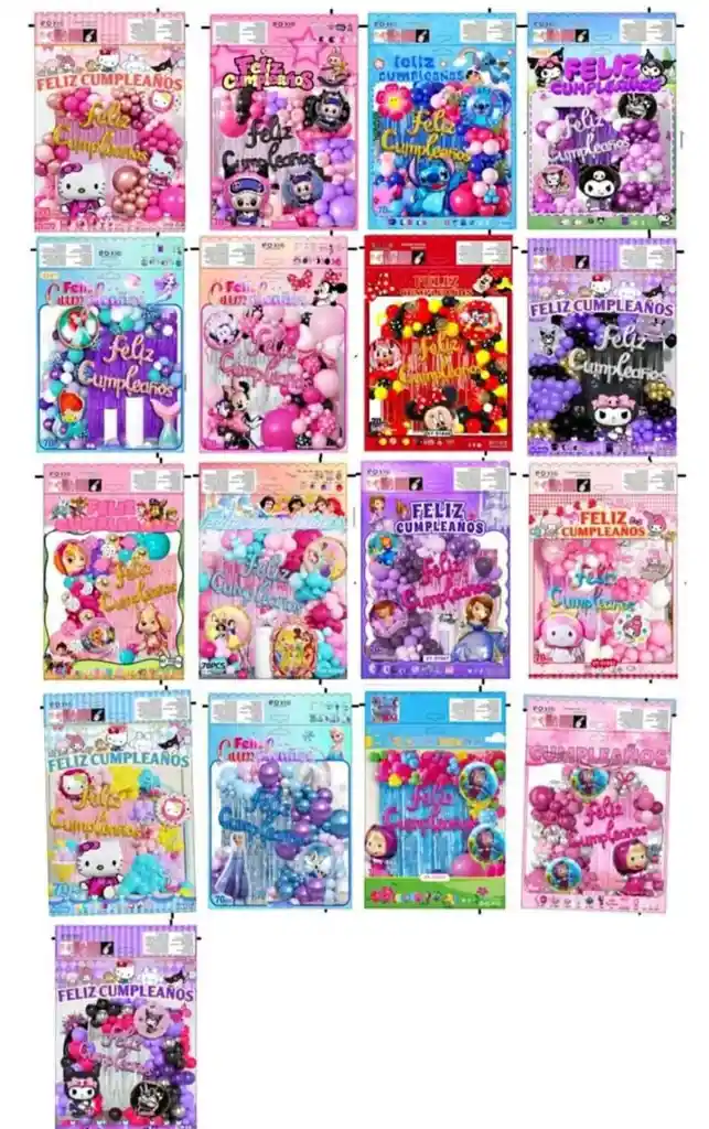 Hermosos kits de decoración con variedad de motivos infantiles y personajes favoritos 🎈🥳 Ideales para cumpleaños y celebraciones especiales. Cada kit incluye aproximadamente 70 piezas entre globos de diferentes tamaños, guirnalda “Feliz Cumpleaños”, fondo metálico y accesorios para armar tu decoración. Todo viene listo y sellado en su empaque. 🎨 Gran variedad de diseños y colores 📦 Se vende por unidad 🚚 Se envía según modelo disponible 📲 Pregunta por los motivos disponibles al momento de tu compra