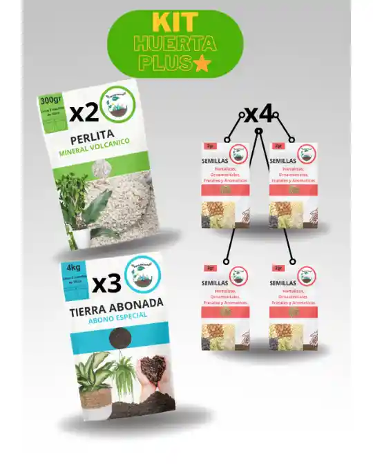 Saludos Estimados Clientes 🌱 Kit completo para iniciar tu huerta en casa. Incluye 3 sacos de tierra abonada, semillas y perlita. Ideal para balcones y materas. ✔️ Más económico que comprar por separado. 🌱 Tierra abonada 4 kg → 3 unidades (12 kg) 🌾 Semillas → 4 sobres (Nos escribes cuales semillas deseas de las opciones que les vamos a enviar por mensaje) ⚪ Perlita → 2 bolsas de 300 g (600 g) COMPRE CON SEGURIDAD Y CONFIANZA* Somos AgricUrbana. amplia experiencia en ventas on-line.*Aceptamos todas las formas de pago**Despachos a todo el pais**