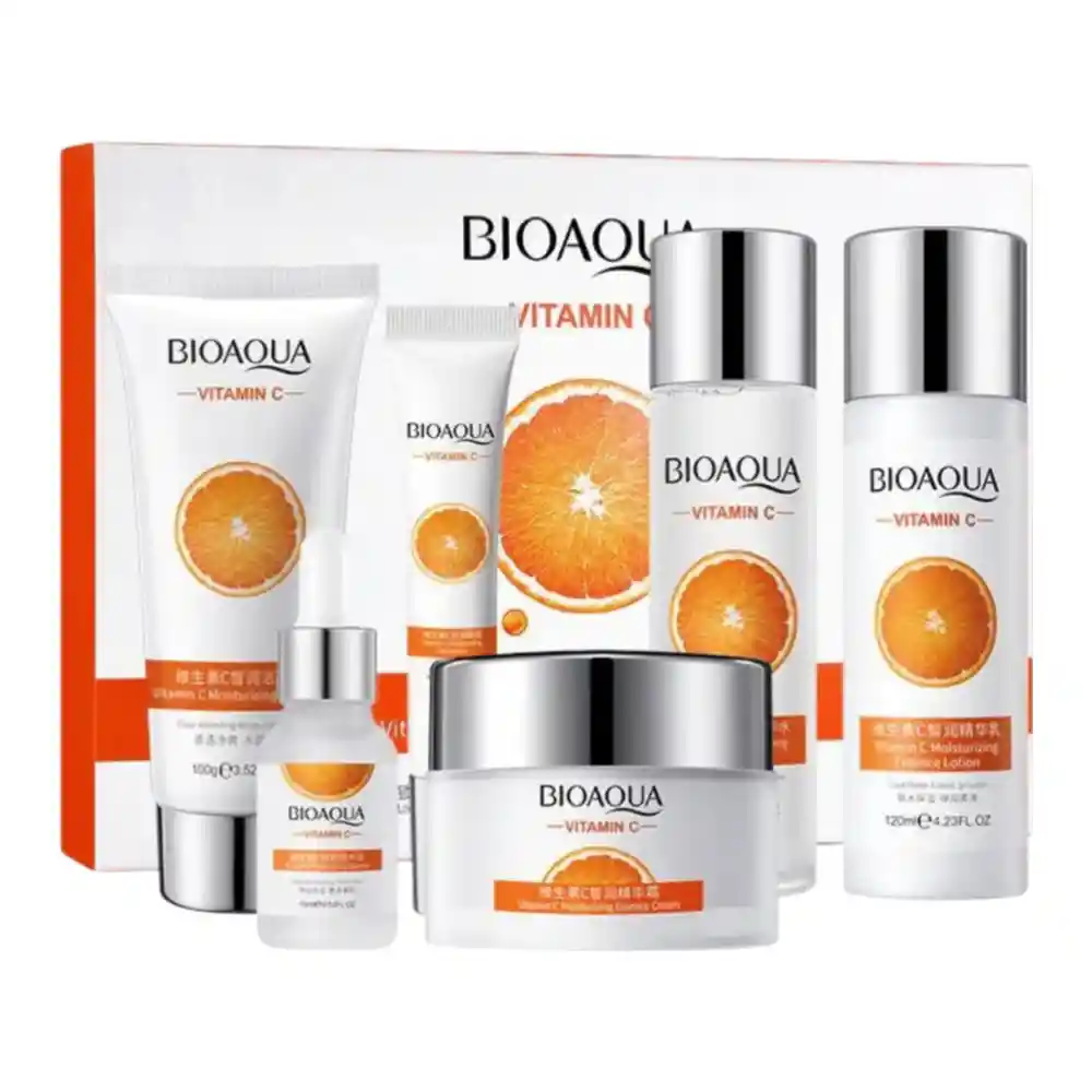KIT X6 RUTINA DE VITAMINA C BIOAQUA Descripción ¿Quieres una piel más luminosa, firme y uniforme? El Kit X6 Rutina de Vitamina C Bioaqua es una rutina facial completa diseñada para revitalizar tu piel, mejorar su textura y ayudar a prevenir los signos visibles del envejecimiento. Formulado con vitamina C de alta calidad, este tratamiento integral contribuye a iluminar el rostro, mejorar la elasticidad y proteger la piel frente a los factores externos que aceleran el envejecimiento. Beneficios principales 1. Ayuda a combatir los signos del envejecimiento La vitamina C favorece la producción de colágeno y elastina, esenciales para mantener la piel firme y tersa. Con el uso constante, ayuda a reducir la apariencia de líneas de expresión y arrugas. 2. Ilumina y unifica el tono Contribuye a disminuir la apariencia de manchas oscuras y zonas desiguales, dejando el rostro más radiante y uniforme. 3. Protección antioxidante Actúa contra los radicales libres, ayudando a prevenir el daño celular y el envejecimiento prematuro. 4. Hidratación y nutrición profunda Aporta hidratación prolongada, dejando la piel suave, flexible y con aspecto saludable. Contenido del kit Jabón limpiador facial con vitamina C (100 g) Loción tonificante con vitamina C (100 ml) Tónico hidratante con vitamina C (100 ml) Sérum rejuvenecedor con vitamina C (30 ml) Crema contorno de ojos con vitamina C (20 g) Crema hidratante facial con vitamina C (50 g) Tipo de piel Apto para todo tipo de piel, incluyendo piel sensible. Modo de uso recomendado Limpia el rostro con el jabón facial. Aplica la loción o tónico con suaves toques. Extiende el sérum en rostro y cuello hasta su completa absorción. Aplica la crema hidratante facial en rostro y cuello. Finaliza con la crema de contorno de ojos, aplicando suavemente alrededor del área ocular. Para mejores resultados, usar diariamente en la mañana y en la noche. Resultados Con el uso constante, la piel luce más luminosa, firme y uniforme. Incorpora esta rutina a tu cuidado diario y potencia la apariencia saludable de tu rostro.