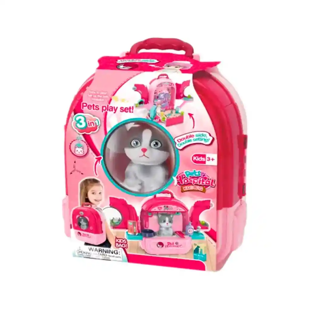 Kit Medico Y Cuidado Gato Maleta 3/1 Portatil Juguete Niñas