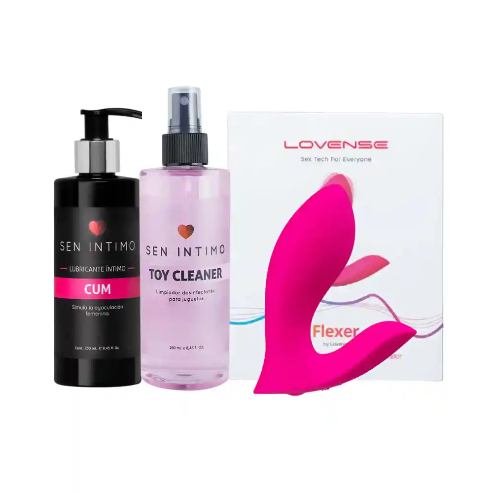 Un kit especialmente diseñado para modelos Webcam con el grandioso y estimulante vibrador dual Flexer que te que se convertirá en tu mejor amigo y compañero de espectáculo, un lubricante tipo cum que te ayudará a brindar un show más emocionante y un limpiador de juguetes para que cuides de tu amigo. Características del Kit: Incluye: Vibrador Dual Flexer Lovense, Lubricante Cum Woman 250 Ml Sen Intimo y Limpiador De Juguetes 250 Ml Sen Intimo. Vibrador Dual Flexer: • Interactivo con App y Plataformas Webcam como Stripchat, Chaturbate, Camsoda y otras. • Material: Silicona grado Médico • Largo total: 10 cm Insertable: 8.1 Cm x 3.6 Cm • Medida estimulador: 5,3 Cm x 1.8 Cm • Carga magnética • Hasta 1.5 - 2 horas de uso Tiempo de carga: 1 – 1.5 horas • 100% resistente al agua • Garantía de 1 año Lubricante Cum Woman: • Registro INVIMA: 2021DM-0024066 Limpiador de Juguetes: • Registro INVIMA: NSOC00123-20CO Precauciones: Limpia el vibrador antes y después de cada uso con el limpiador incluido. Usa únicamente lubricantes a base de agua. No uses lubricantes de silicona con el juguete. En caso de reacciones desfavorables con los lubricantes, suspende su uso y consulta a un especialista. No sumerjas el vibrador completamente en agua. Confidencialidad: Tus productos se enviarán en un empaque totalmente discreto, sin marcas ni logotipos visibles. Respetamos profundamente tu privacidad y seguridad. Garantía: Para efectos de garantía será necesaria la caja original para validar el producto.
