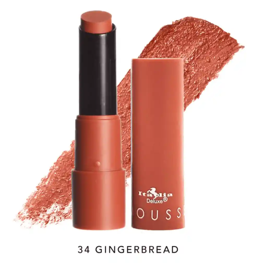 Labial Mate Italia Deluxe - Tono 34 Gingerbread Nuestros labiales Mousse Matte son tan hermosos como se ven y ¡uno de nuestros productos favoritos! Su fórmula única y suave en mousse luce pigmentada y se siente ligera en los labios. Es aterciopelada y de larga duración. La colección tiene todos los tonos que necesitas para cualquier look de maquillaje y viene en una variedad de subtonos cálidos y fríos para embellecer todo tipo de piel.