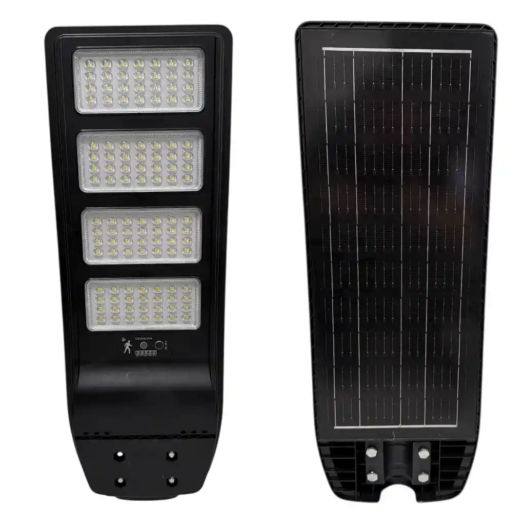 Potencia: 200w solar Incluye: -Lampara -Soporte tipo brazo -Control -Con sensor de movimiento y modo luz continua