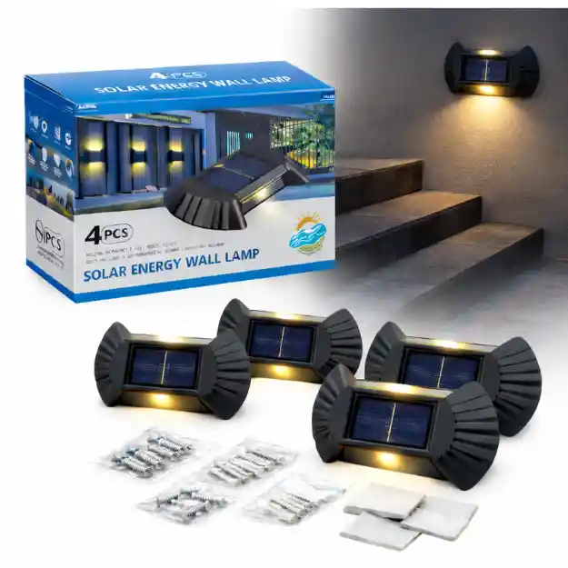 ¿Qué es? Es un set de 4 lámparas solares LED para pared, diseñadas para iluminar exteriores de forma automática y ecológica. Funcionan con energía solar, se cargan durante el día y se encienden por la noche, ideales para jardines, escaleras, patios, fachadas y caminos. ¿Qué incluye la compra? • 4 lámparas solares LED • Kit de instalación (tornillos y tarugos) • Adhesivos de fijación • Caja protectora Características: • Energía solar sin cables ni electricidad • Encendido automático nocturno • Luz LED cálida decorativa • Resistente al agua y clima exterior • Ahorro de energía • Instalación rápida y sencilla • Diseño moderno para exteriores • Botón ON/OFF integrado • Ideal para muros, escaleras, jardín y patio Modo de uso: 1. Instala la lámpara en pared o superficie exterior con tornillos o adhesivo. 2. Ubica en un lugar donde reciba luz solar directa. 3. Enciende el interruptor ON/OFF. 4. Durante el día se cargará automáticamente. 5. En la noche se encenderá de forma automática. Detalles: • Luz LED cálida ambiental • Panel solar integrado • Uso exterior e interior • Funcionamiento automático día/noche • Bajo consumo energético • Diseño compacto y moderno Dimensiones: Largo: 10 cm Alto: 8 cm Ancho: 2.8 cm Panel superior: 4.3 cm aprox. Peso: 54 g cada lámpara 255 g el paquete Colores: Negro Talla: Tamaño compacto universal Materiales: • Plástico ABS resistente • Panel solar • Componentes LED Advertencias: • Instalar en exteriores con acceso a luz solar • No sumergir en agua • Mantener limpio el panel solar • Evitar golpes fuertes • Mantener fuera del alcance de niños pequeños Garantía de fábrica: 30 días Garantía por defectos de fábrica (no cubre daños por mal uso o instalación incorrecta).